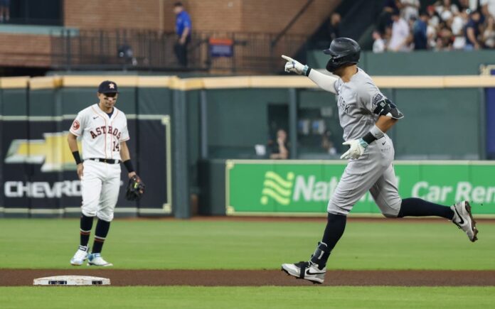Aaron Judge homered for the second time in as many games and the visiting New York Yankees rode an exceptional relief effort from rookie Jhony Brito into a 5-4 win over the Houston Astros on Saturday.