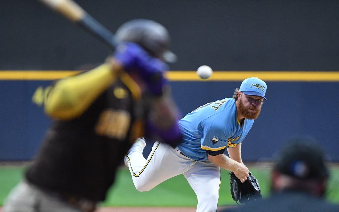 Brandon Woodruff held the Padres to a Manny Machado solo homer to push his record to 3-1 in just his sixth start during an injury-plagued season.