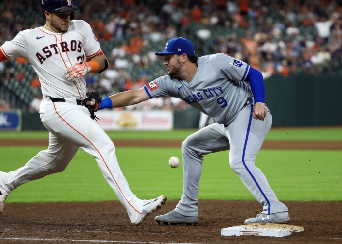 In the eighth inning of a 6-3 loss to the host Houston Astros, Erceg was injured when he tried to field a hard-hit chopper by Yainer Diaz back to the mound with his bare hand. On that same play, Pasquantino’s attempt to field the throw forced his arm into the runner’s lane, where he collided with Diaz.