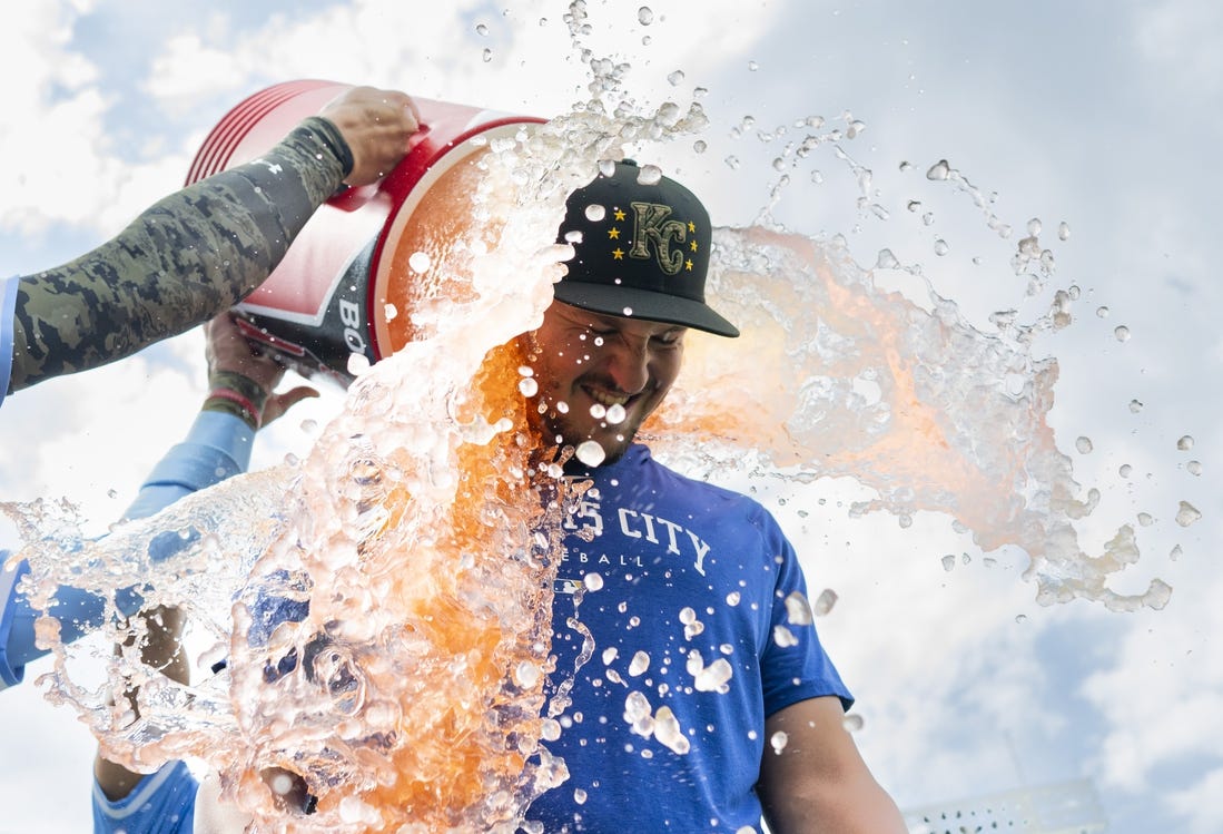 Pasquantino is 2-for-3 with four RBIs since adjusting his jersey after Kansas City Royals manager Matt Quatraro told the first baseman he looked “awful” playing with his top two buttons open.