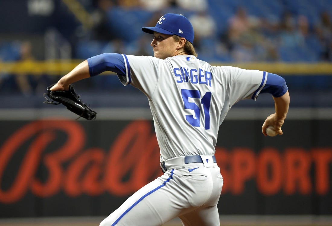 After dominating the Rays last month in Kansas City, Brady Singer was solid through six innings on Friday. He tossed five scoreless before being touched for two runs in the sixth. He finished that inning, and wound up allowing five hits with four walks and seven strikeouts.