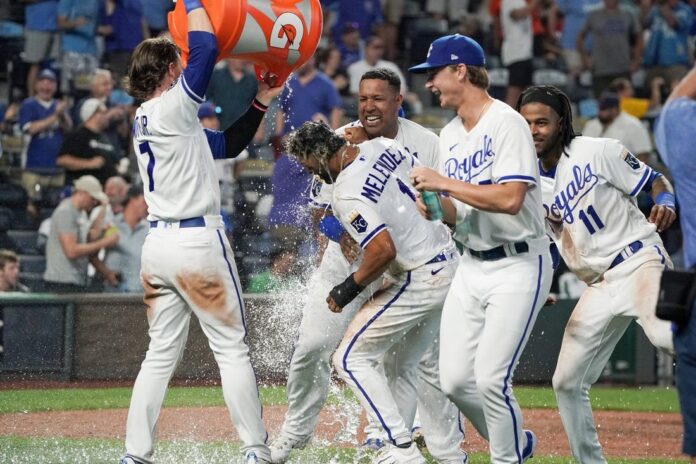 Bobby Witt Jr.’s leadoff double off Brooks Raley (0-2) scored automatic runner Maikel Garcia before Witt scored on Melendez’s single.