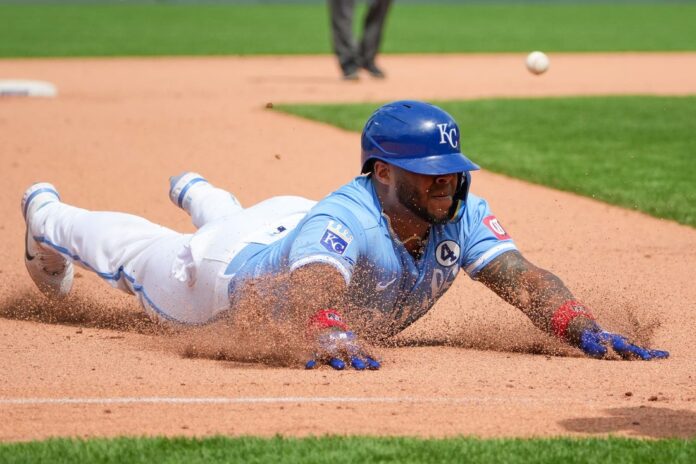 Velazquez’s first triple since 2022 was the only extra-base hit for the Royals, who extended their streak of at least one such hit to a club-record 61 games, the third-longest streak to begin a season in the last 10 years.