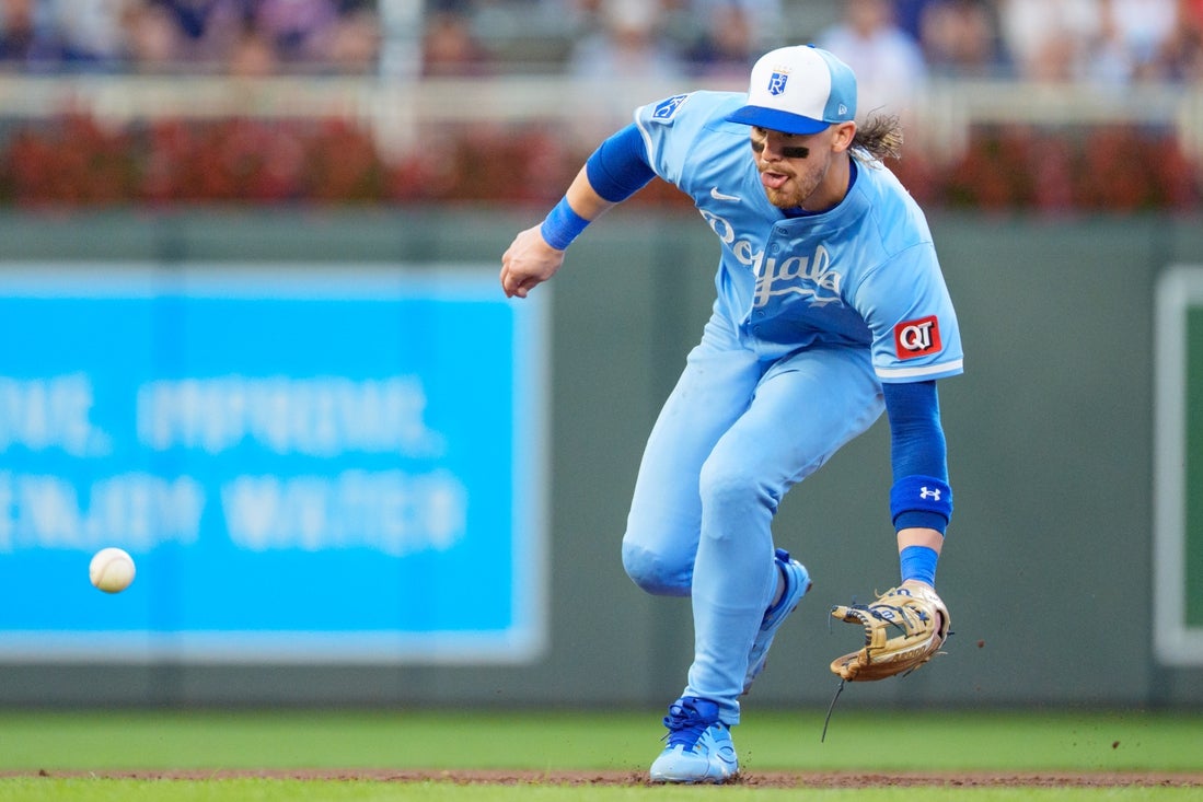 Maikel Garcia, usually the Royals’ third baseman, shifted to make the start at shortstop Sunday. Adam Frazier stepped in at third.