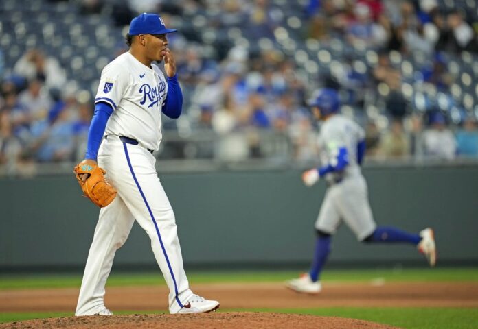 Making his major league debut, left fielder Addison Barger misplayed Kyle Isbel’s second-inning fly ball into a double, then allowed Isbel to advance to third on an error. Isbel scored on Maikel Garcia’s two-out single to extend the Royals’ lead to 2-0.