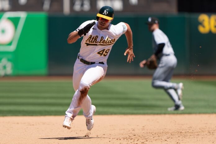 Shea Langeliers had Oakland’s first hit with two outs in the seventh when he singled to right. Olson then struck out Noda.