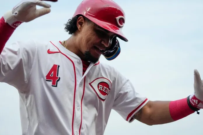 Santiago Espinal homered and fell just a triple shy of the cycle, while right-hander Nick Martinez earned the win, pitching four scoreless innings of relief as the Reds won for the seventh time in nine meetings between the two clubs.