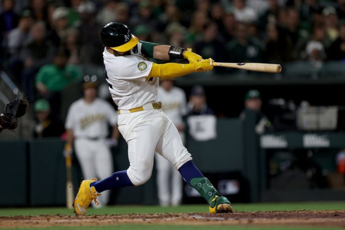 The Athletics scored in the first when Carlos Cortes drew a two-out walk and scored on Soderstrom’s double to deep left.