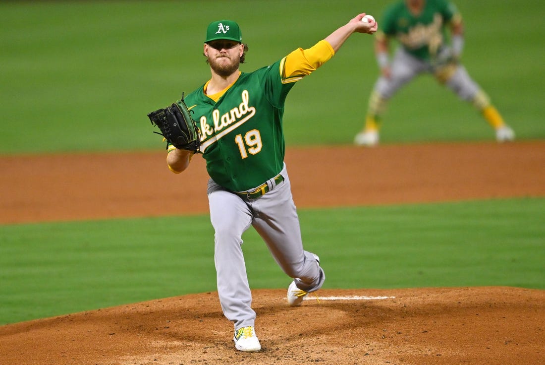He struck out Vimael Machin, then got Sean Murphy to hit into an inning-ending double play to finish the first.