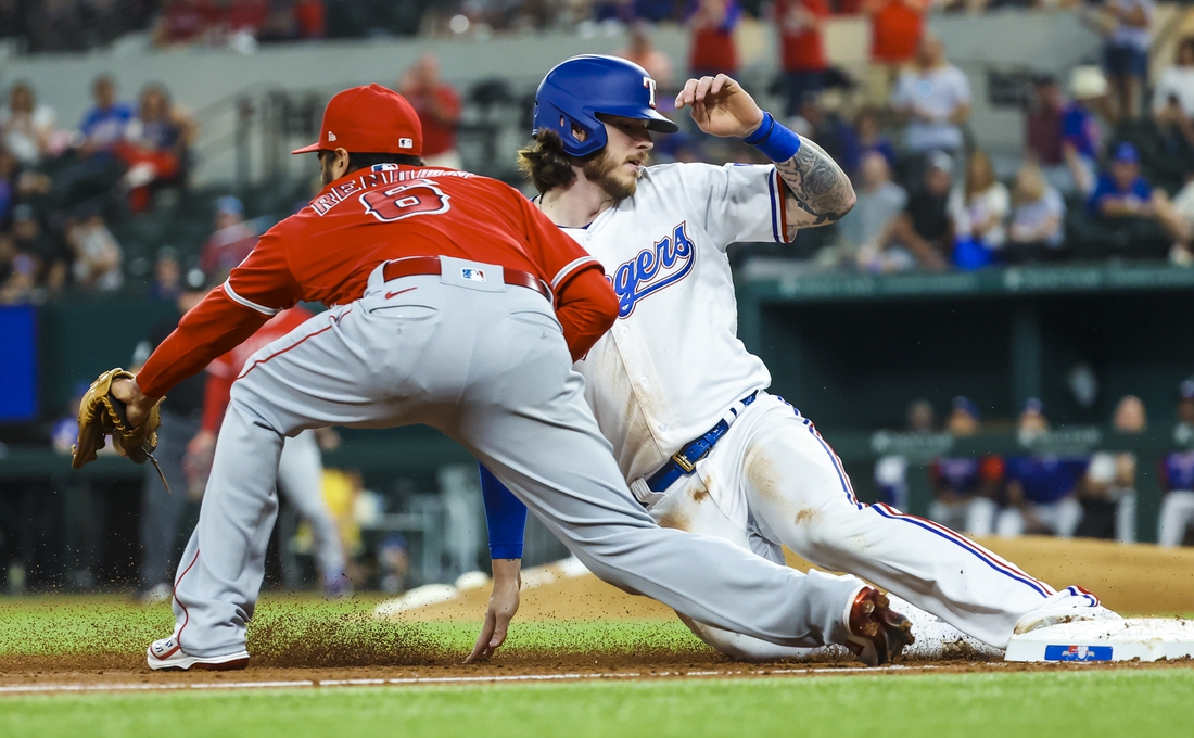Heim reached on first baseman Jared Walsh’s error, which gave the Rangers a 4-3 lead. After Sam Huff’s two-out single and Brad Miller’s walk loaded the bases, White’s single off Barria capped the rally.
