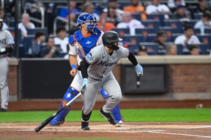 Jakob Marsee scored the tiebreaking run on an error and the Miami Marlins took advantage of sloppiness by the host New York Mets to earn a 7-4 win in the opener of a four-game series between the National League East rivals Thursday.