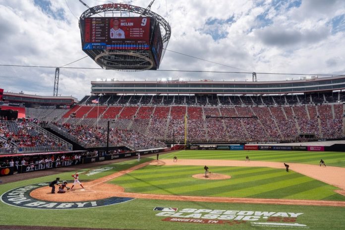 Outside of exhibition games, the weekend’s Speedway Classic attendance ranks as the fourth-highest in MLB history. The 1959 World Series, featuring the Dodgers and Chicago White Sox, drew the highest crowds at 92,706 (Game 5), 92,650 (Game 4) and 92,394 (Game 3) — all played at Los Angeles Memorial Coliseum.