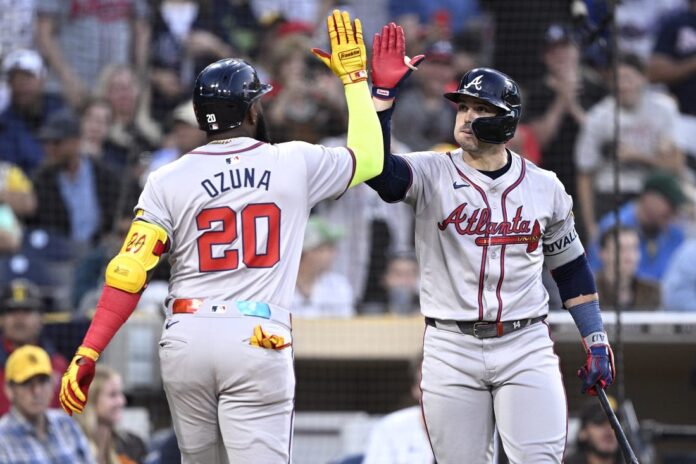 Marcell Ozuna led the Atlanta offense, jacking a pair of solo homers to give him 26 long balls for the season. Orlando Arcia also homered as the Braves collected nine hits off three San Diego pitchers.