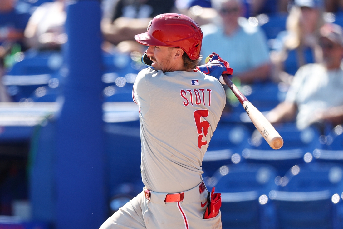 Stott lined a rocket to left center in the bottom of the fifth, and the two Detroit outfielders collided, allowing J.T. Realmuto and Stott to score safely for a 2-1 lead. Stott made it 3-1 by following up that scoring play with an RBI single in the seventh, as he finished 2-for-3 for the day.