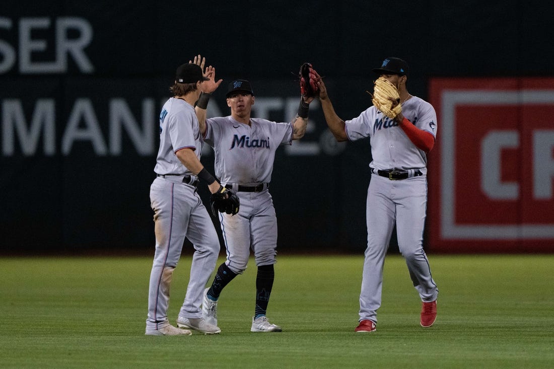The Marlins, coming off a three-game road series in which they were held to four runs by the Los Angeles Dodgers, almost matched that total in a 3-0 win over the A’s in the series opener on Monday.