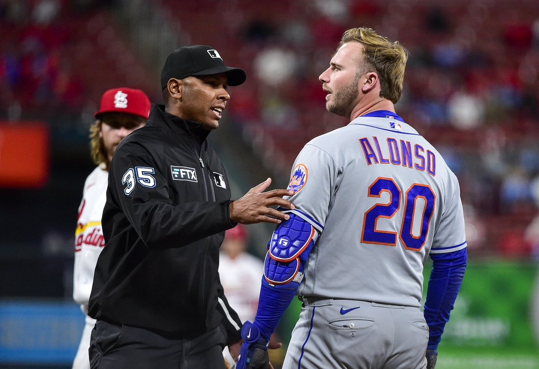 Benches emptied and no real punches were thrown, though Alonso was grabbed and tossed to the ground by Cabrera and Cardinals first base coach Stubby Clapp.