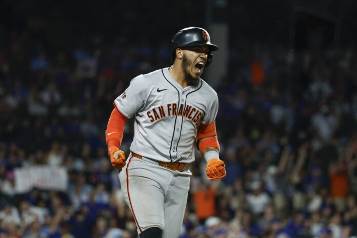 Thairo Estrada hit a three-run homer in the top of the ninth inning to lift the visiting San Francisco Giants to a 7-6 win against the Chicago Cubs in the opener of their three-game series on Monday night.