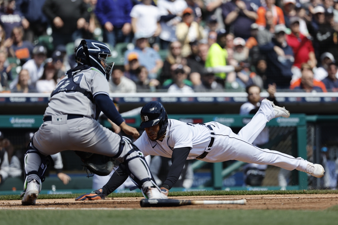 Lucas Luetge replaced Castro and induced Jeimer Candelario to hit into a 1-2-3 double play. The Yankees then elected to walk Cabrera, drawing boos from the home crowd. Meadows followed with a bloop hit that dropped into short center, allowing two runs to score.