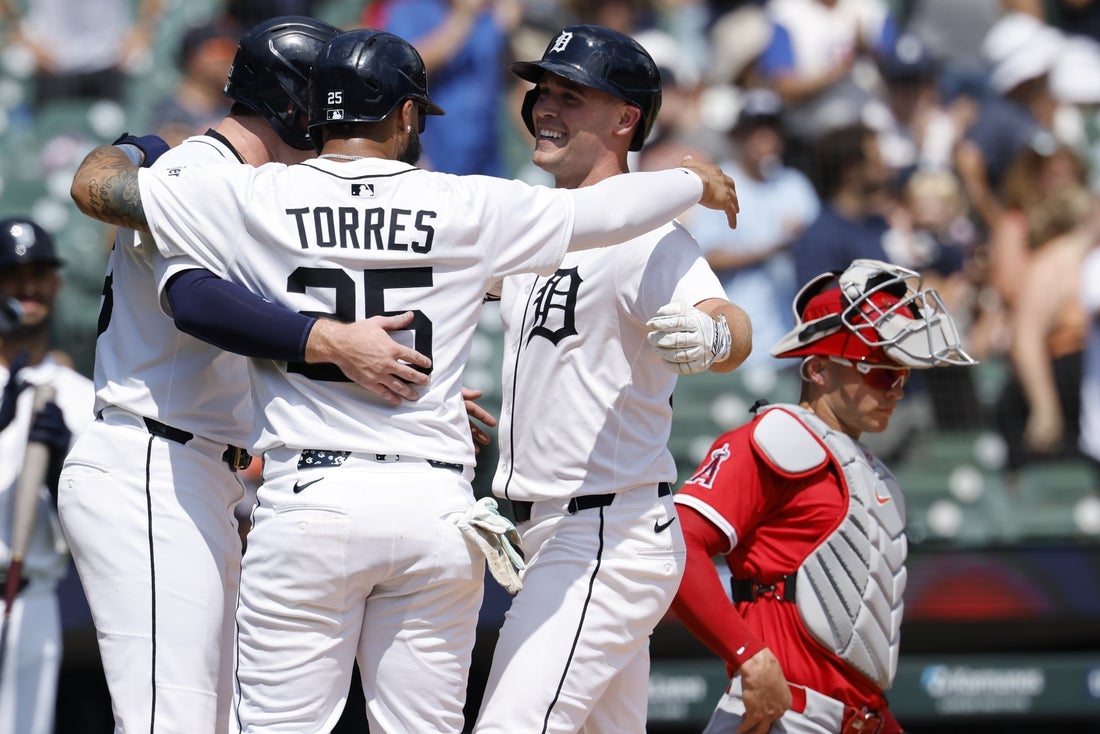 Riley Greene added a two-run homer and had three RBIs for the Tigers, who took two of three games from the Angels and collected 10 hits in Sunday’s victory.