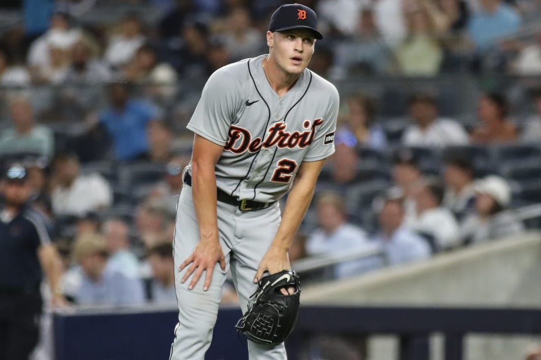 Detroit Tigers starting pitcher Matt Manning exited Wednesday night’s game against the host New York Yankees after the first inning because of a right foot injury.