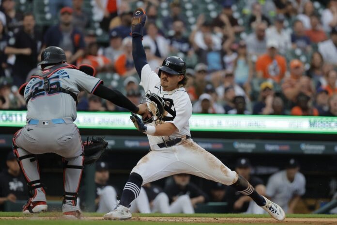 Marlins starter Sixto Sanchez gave up three unearned runs and five hits in 4 2/3 innings. Detroit’s Matt Manning, called up from Triple-A Toledo earlier Monday, allowed three runs and nine hits in 5 2/3 innings.