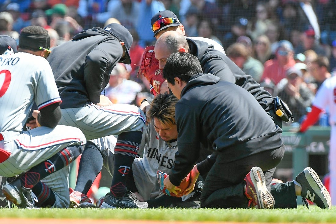 Minnesota Twins starting pitcher Kenta Maeda left Thursday’s game against the Boston Red Sox at the end of the second inning after being hit in the left leg by a Jarren Duran line drive.