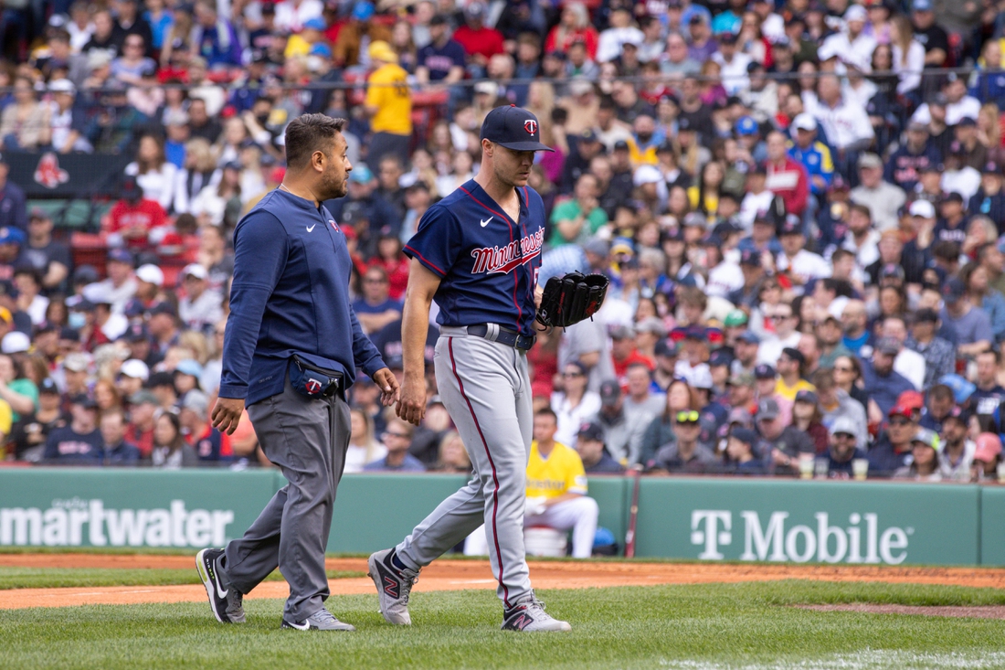 Minnesota Twins right-hander Sonny Gray departed Saturday’s game against the host Boston Red Sox after 1 2/3 innings due to a tight right hamstring.