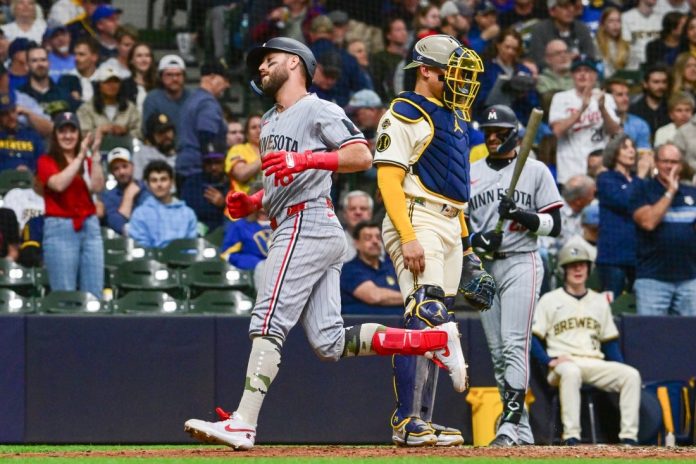 Jeffers doubled to open the third on a misplayed fly ball by left fielder Jake Bauers and Brooks Lee singled. Jeffers scored on Ty France’s single when right fielder Sal Frelick appeared to make a fully extended diving catch, but Frelick’s glove came off and the ball trickled out when he hit the warning track dirt.