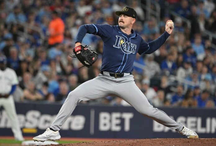 The Rays broke through in the sixth when Randy Arozarena doubled down the left-field line with one out. He scored on first baseman Vladimir Guerrero Jr.’s errant throw to third after Jonathan Aranda grounded out to second. Isaac Paredes walked for the third time in the game with two outs. Palacios followed with his fourth homer of the season on a drive to right field. Zach Pop replaced Bassitt.