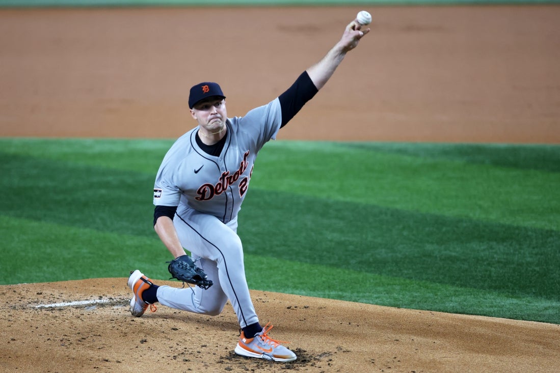 Skubal retired eight batters in a row between Corey Seager’s double in the first inning and Seager’s single to open the fourth. He then set down the next 10 batters before Adolis Garcia’s double with one out in the seventh.