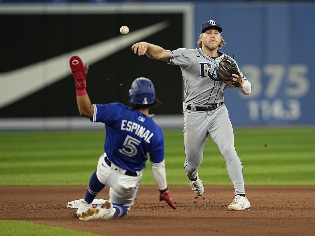 Danny Jansen doubled to lead off the bottom of the fourth, took third on a groundout and scored on Espinal’s infield hit.