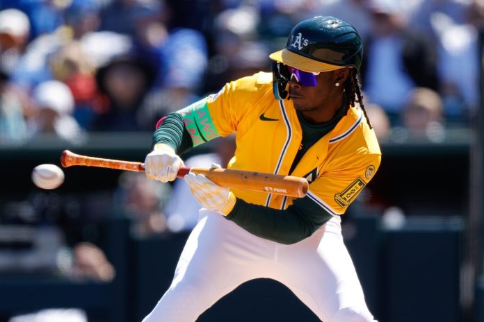 A’s leadoff man Lawrence Butler collected three of the club’s five hits.