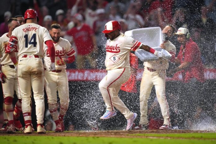 Moniak led off with a double, advanced to third on a groundout and scored on Jo Adell’s single. Anthony Rendon then walked to put Adell in scoring position, and Nolan Schanuel followed with a run-scoring single to tie things at 4.