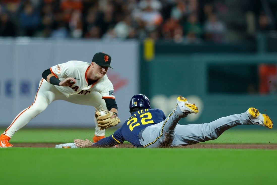 An RBI single by Patrick Bailey and a throwing error by Milwaukee second baseman Brice Turang had plated the Giants’ first two runs.
