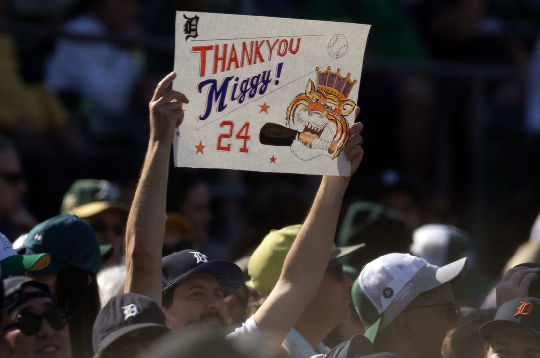 A nice bottle of Northern California wine packed into his suitcase, Miguel Cabrera will wave goodbye to San Francisco Bay Area baseball fans when his Detroit Tigers visit the Oakland Athletics for the finale of a four-game series on Sunday.