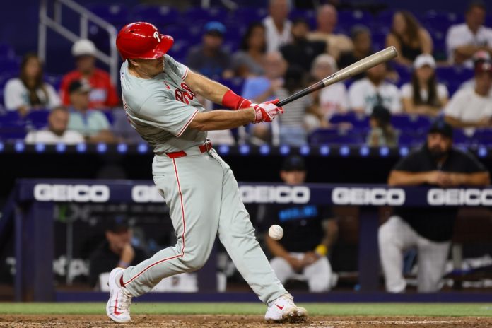 Third baseman Alec Bohm was placed on the injured list on Friday due to a strained left hand. Later that night, catcher J.T. Realmuto — a former Marlins star — sustained a left knee contusion during Philadelphia’s 16-2 win.