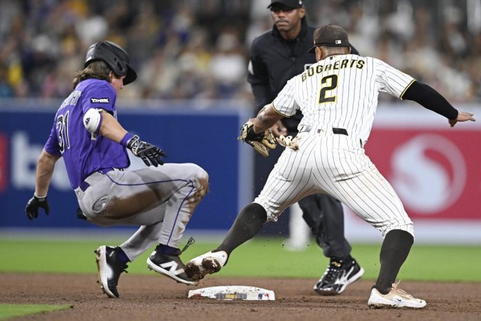 Neither team’s starter or bulk reliever was around for the decision. Colorado’s Chase Dollander took over after Jimmy Herget pitched a 1-2-3 first inning and permitted a run on four hits and a walk over 4 1/3 innings, fanning three. San Diego’s Randy Vasquez gave up seven hits and a run in 5 2/3 innings, walking none and whiffing eight.
