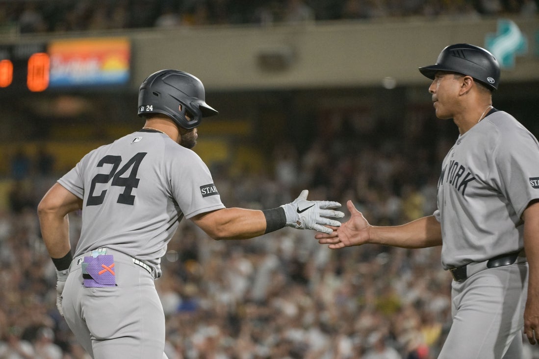 “Very impressive,” New York manager Aaron Boone said. “Really quality at-bats by him. He’s capable of things like that.”