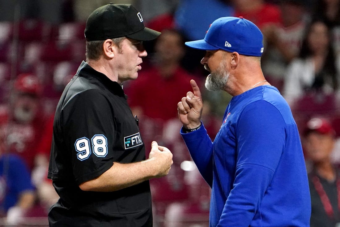 Chicago’s Frank Schwindel went 0-for-4 on Wednesday after a recent hot streak. The designated hitter had hit four home runs in the previous four games, including his first career multi-homer game on Tuesday in the Cubs’ 11-4 win at Cincinnati.