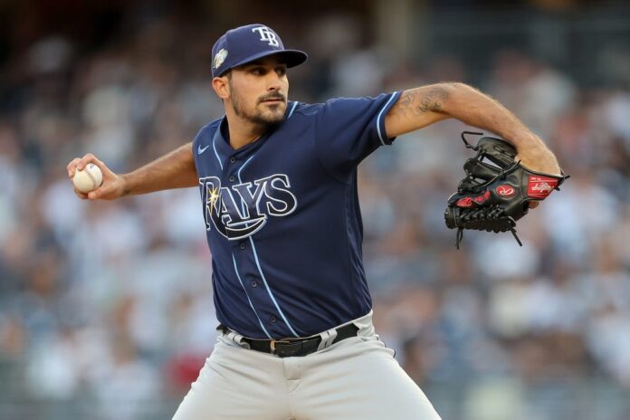 Zach Eflin pitched six scoreless innings and Randy Arozarena and Yandy Diaz homered off Carlos Rodon as the visiting Tampa Bay Rays recorded a 5-2 victory over the New York Yankees on Tuesday night.