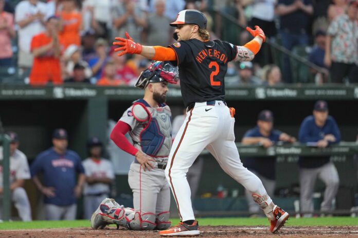 After a leadoff walk to Anthony Santander in the bottom of the inning, Henderson gave the Orioles a 2-1 lead with a two-run blast to right.