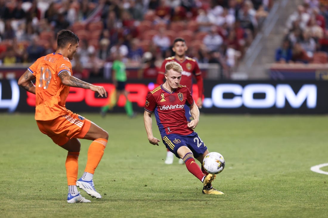 Salt Lake took the lead 10 minutes before halftime. Jasper Loeffelsend found Jefferson Savarino near the byline with a throw-in from the right, and Savarino crossed toward the top of the six-yard box.