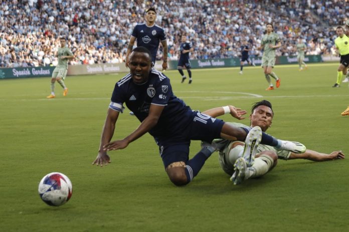 Sporting Kansas City appeared to tie the score four minutes later on Roger Espinoza’s header. But the goal was disallowed when video review determined a foul should have been called on Sporting KC’s Khiry Shelton prior to the scoring sequence.