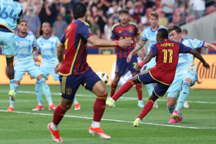 After the Rapids initially half-cleared a Salt Lake corner, Emeka Eneli took a shot from the edge of the penalty area that rattled the crossbar and bounded down in front of Zack Steffen’s goal.