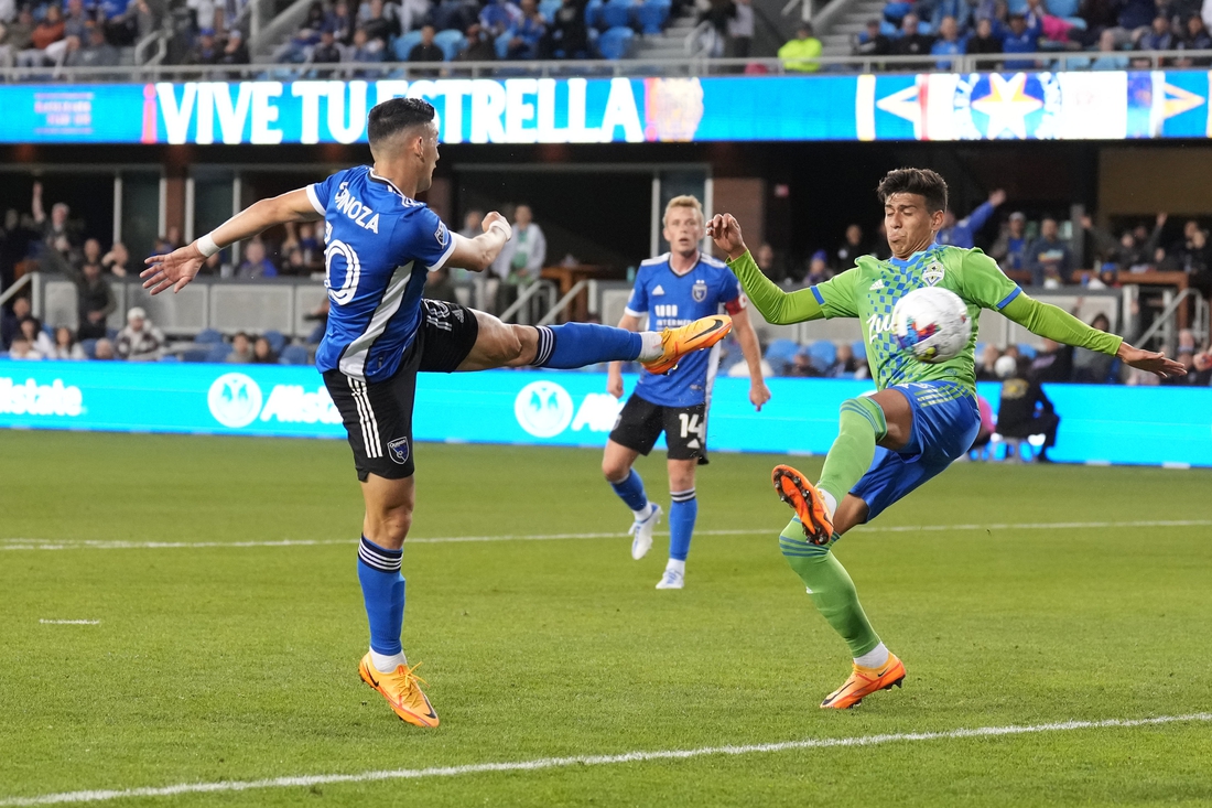 Just after the ensuing kickoff, San Jose’s Jamiro Monteiro stole a pass to start a three-on-two breakaway. Monteiro sent a pass to Espinoza on the right wing and he immediately fed the ball back to Monteiro in the penalty box. He centered the ball to Yueill for an easy one-timer from the top of the 6-yard box past a stunned Seattle defense.