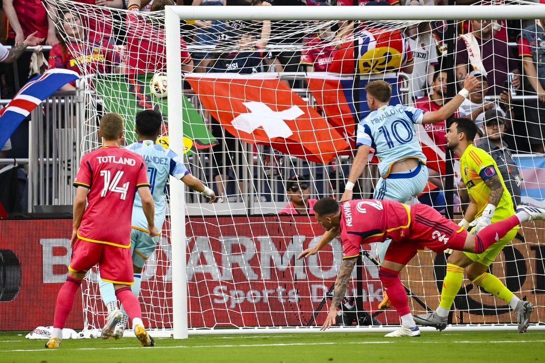 The Rapids struck early off a long throw-in by Sebastian Anderson. St. Louis let the ball take one hop in the box and Mihailovic soared in to head it past Burki off the bounce.