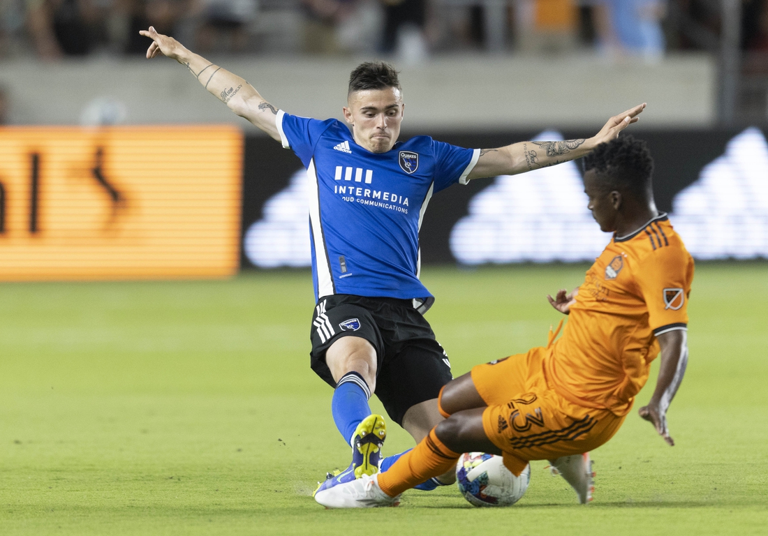 Jeremy Ebobisse scored a pair of goals in a three-minute stretch of the first half for the Earthquakes (0-4-2), while JT Marcinkowski made three saves. San Jose lost its sixth consecutive game at Houston.