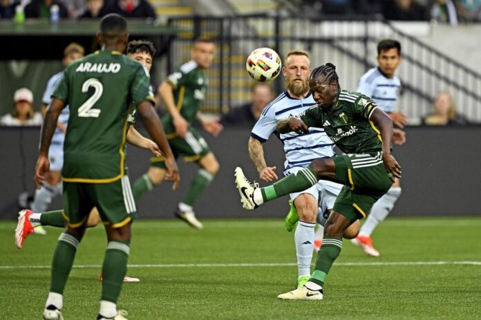 The best chance in a scoreless first half came in the 16th minute as the Timbers’ Miguel Araujo lifted a long pass from his own half over the Kansas City defense. Jonathan Rodriguez ran to the ball near the top left of the 6-yard box but his half-volley went off the post.