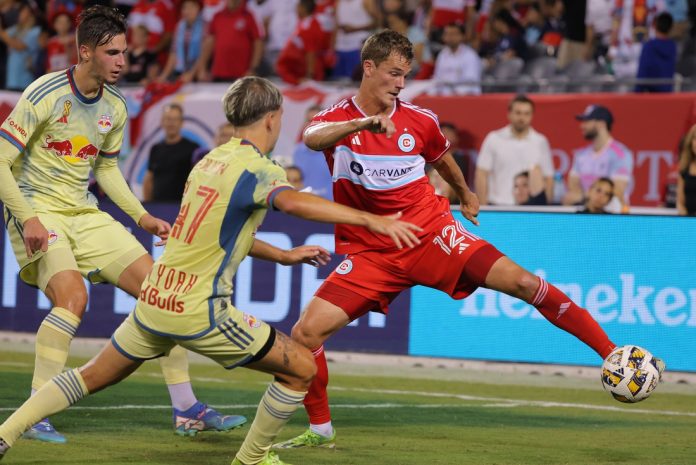 The Chicago Fire kept their playoff hopes alive on Saturday night, beating the visiting New York Red Bulls 2-1.
