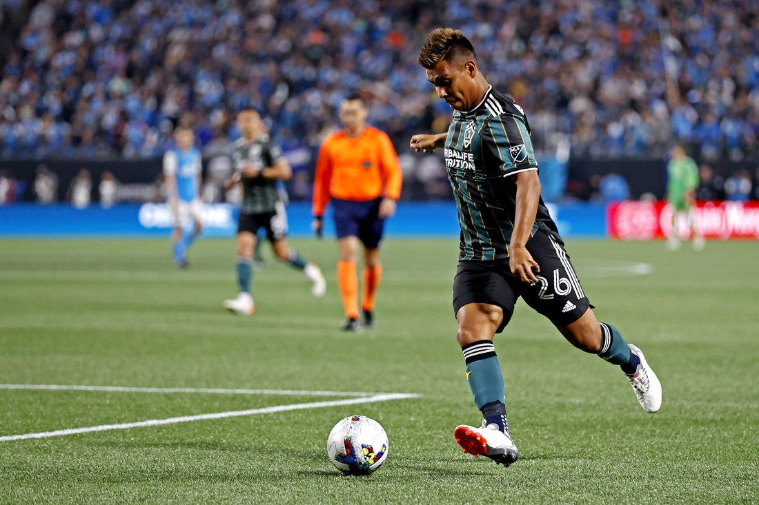 Right after Charlotte’s Christian Fuchs and Benjamin Bender couldn’t convert chances — Fuchs’ shot saved and Bender hitting the post — the Galaxy countered quickly. Alvarez struck from 20 yards out for what would be the game winner.